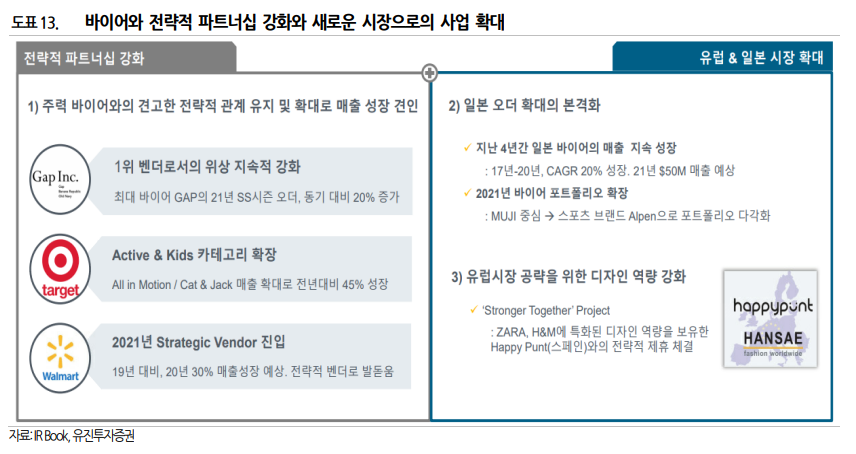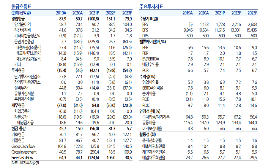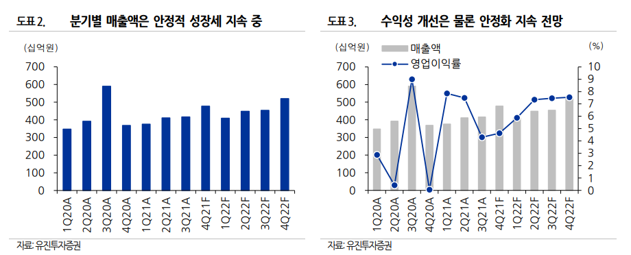 이는 베트남의 셧다운, 물류 지연 등으로 인하여 지연되었던 것이 실적으로 이어졌고 또한 주력 거래선향의 수주가 견고한 가운데, 신규거래선의 추가 수 주가 기여했기 때문임. ② 수익측면에서는 원재료비 상승 부담에도 불구하고, 수익성 높은 선 별 수주에 따라 판가 상승과 수율 개선 등으로 수익성이 크게 개선(영업이익률: 4Q20A 0.0% → 3Q21A 4.3% → 4Q21P 5.3%)된 것도 긍정적임.