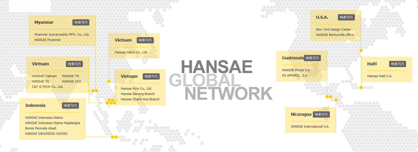 - 베트남 · Hansae Vietnam Co., Ltd. · Hansae TN Co., Ltd. · Hansae TG Co., Ltd. · C&T Vina Co., Ltd.