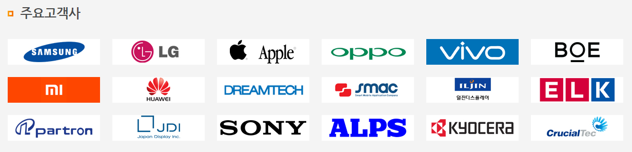 스마트폰 업체 애플에도 납품하고있으며 아이폰의 판매량 호조를 보이고 있으며 앞으로 출시 할 저가모델 또한