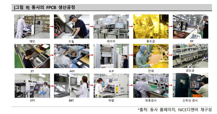 동사의 디스플레이 모듈에 적용되는 FPCB는 RF PCB 타입으로 일반 PCB에 비해 양산 난이도가 높다.